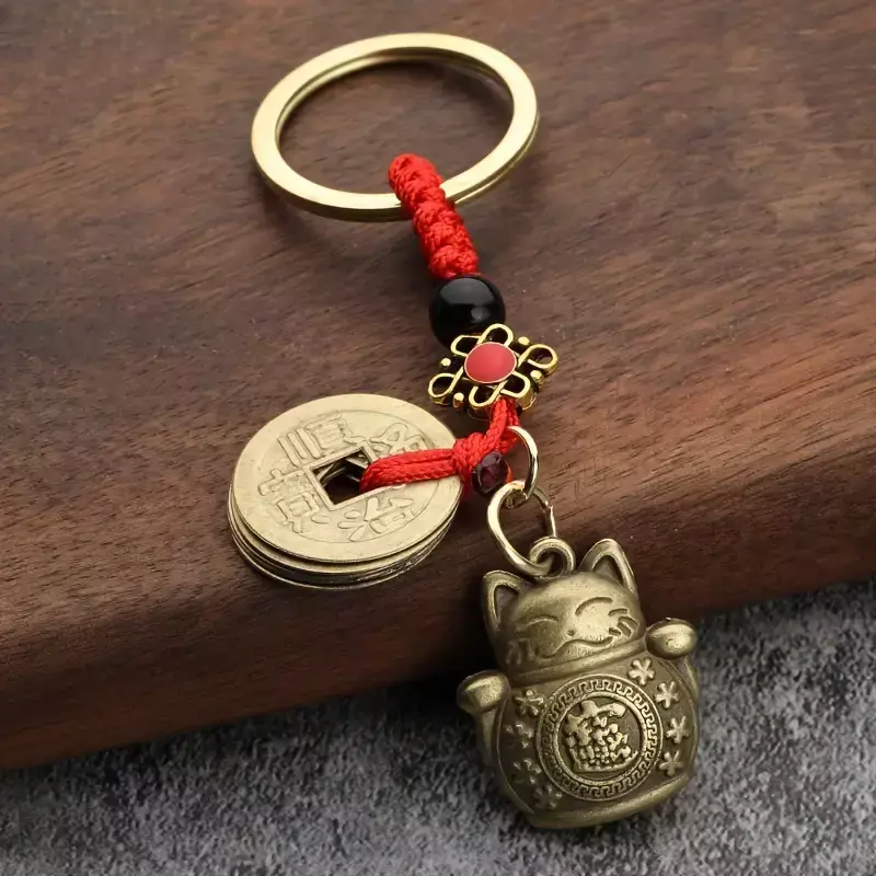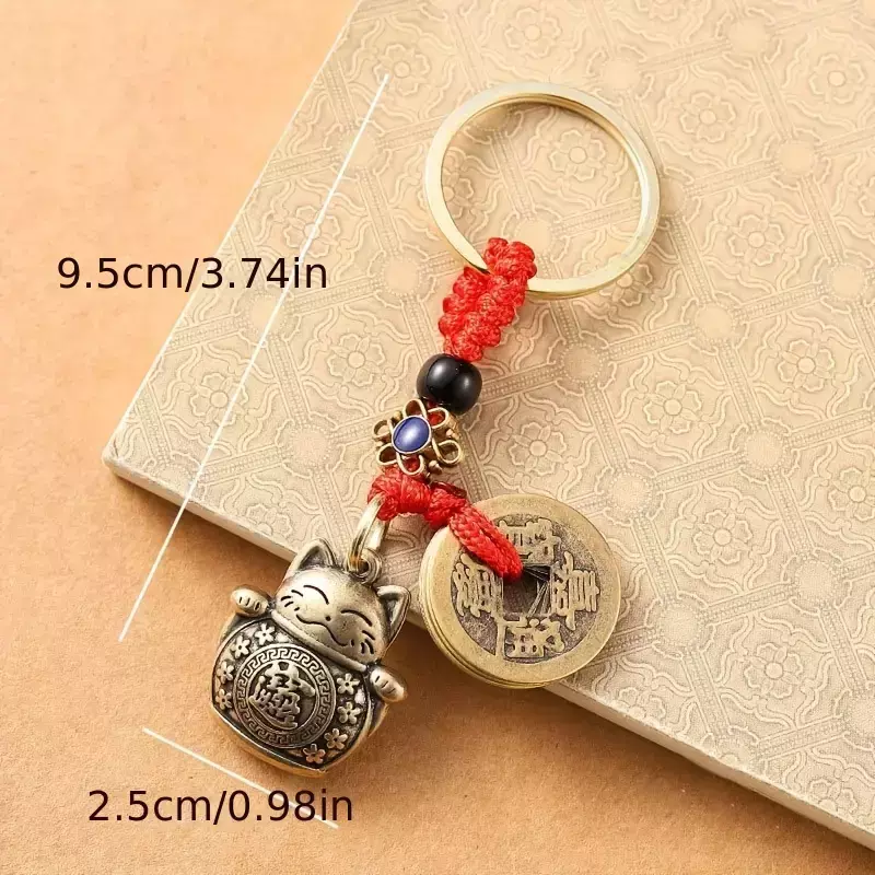 Este exclusivo llavero presenta un diseño único con monedas y el icónico gato de la fortuna, símbolo tradicional de prosperidad y protección. Ideal para quienes buscan un amuleto práctico y con significado, perfecto para llevar en tus llaves, bolsos o mochilas.